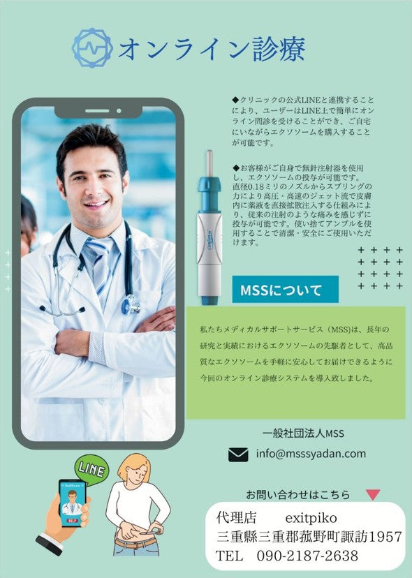 エクソソームをご自宅で!無針注射で安心。オンライン診療も充実。