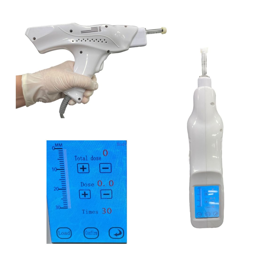 直径0.18ミリのノズルからスプリングの力により高圧・高速のジェット流で皮膚内に薬液を直接拡散注入する仕組みにより、お客様ご自身によるエクソソームの投与が可能です。